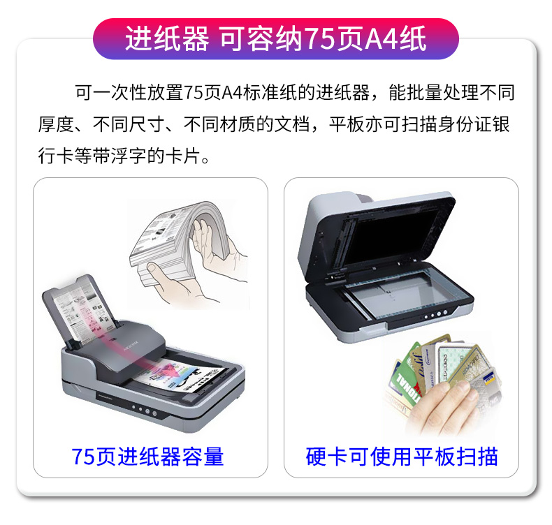 扫描速度75ppm/150ipm(A4,彩色/灰阶/黑白,200dpi)