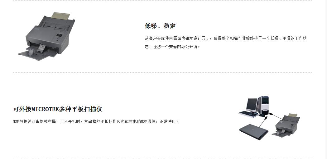 其它特点支持超声波重张检测功能:它可以准确的检测多页重张进纸,即使扫描文件的厚度不一也同样可行。检测到重张进纸后,超声波传感器会立即中止扫描工作来减少重叠进纸的出现,减少了漏扫给用户带来的诸多不便。