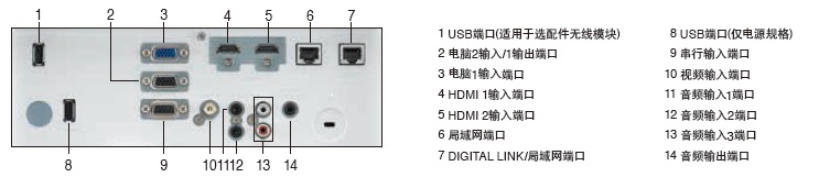 输入接口HDMI*2,D-subHD15-pin*2 , Pin jack*1 ,Pin jack*1 (L/R) ,M3*2 ,M3*1,D-sub9-pin*1,RJ45*2,USB*2