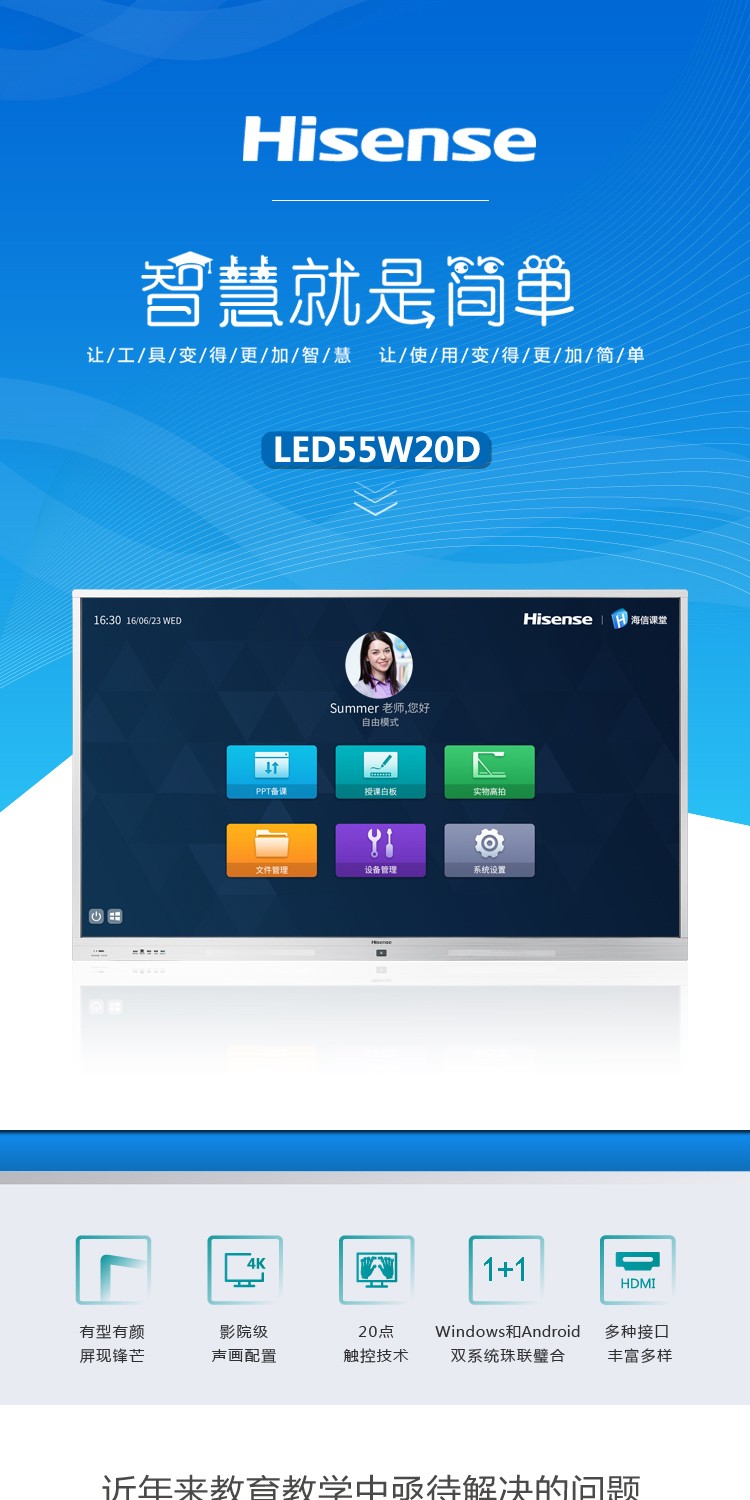 触摸功能免驱、免校正触摸红外技术,支持≥10点触控 windows和 android双系统支持10点或以上书写;