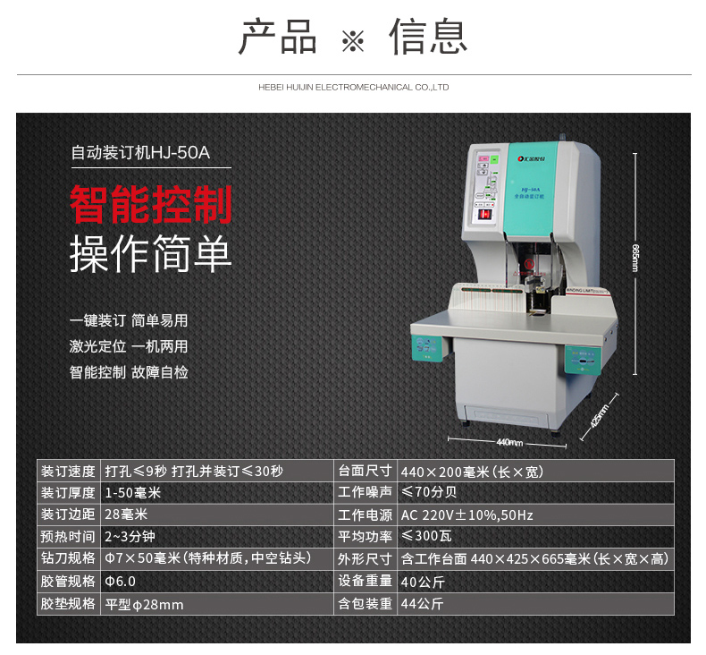 类型汇金HJ-50AH全自动液晶屏装订机 (银行明星机型 ,液晶屏,胶垫自转5公分全自动装订)