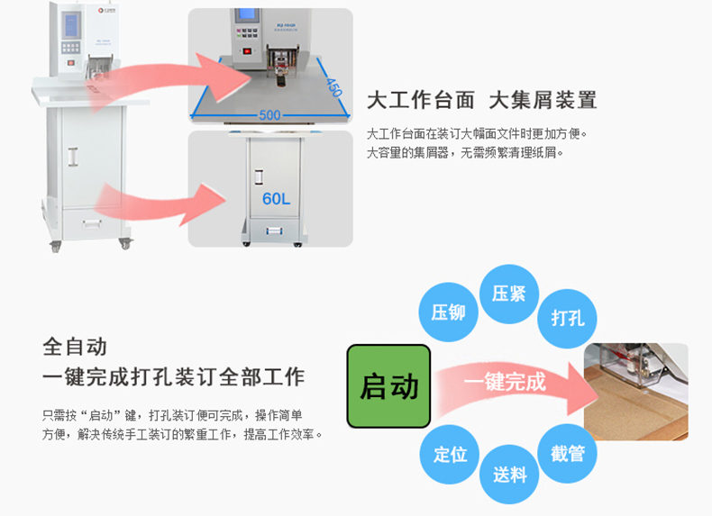 类型汇金HJ-50AD自动财务装订机 (A3幅面任意尺寸装订立式液晶档案装订机 )