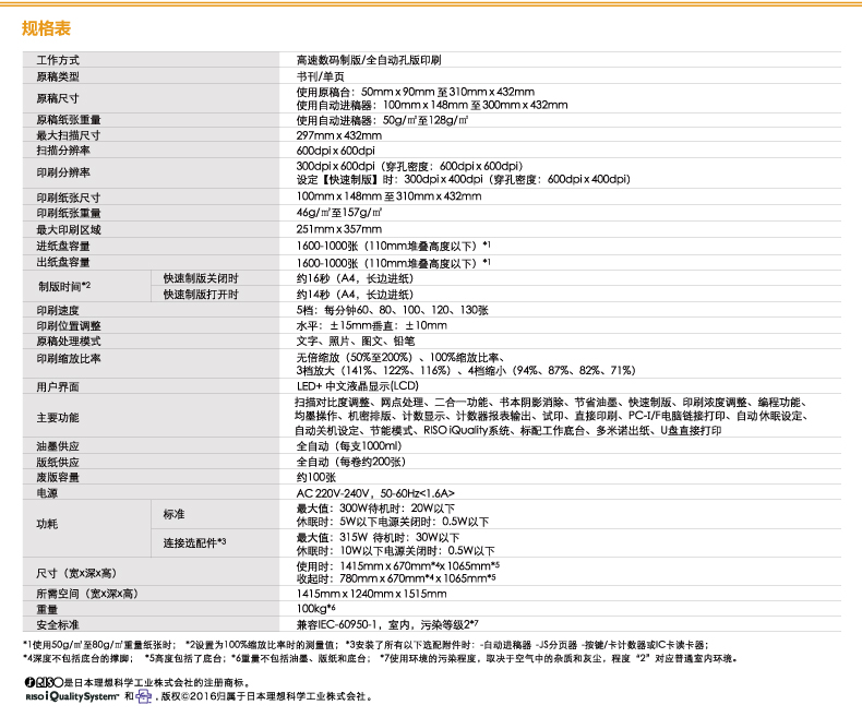 打印分辨率300dpi×600dpi(穿孔密度:600dpi×600dpi)设定快速制版时:300dpi×400dpi(穿孔密度:600dpi×400dpi)
