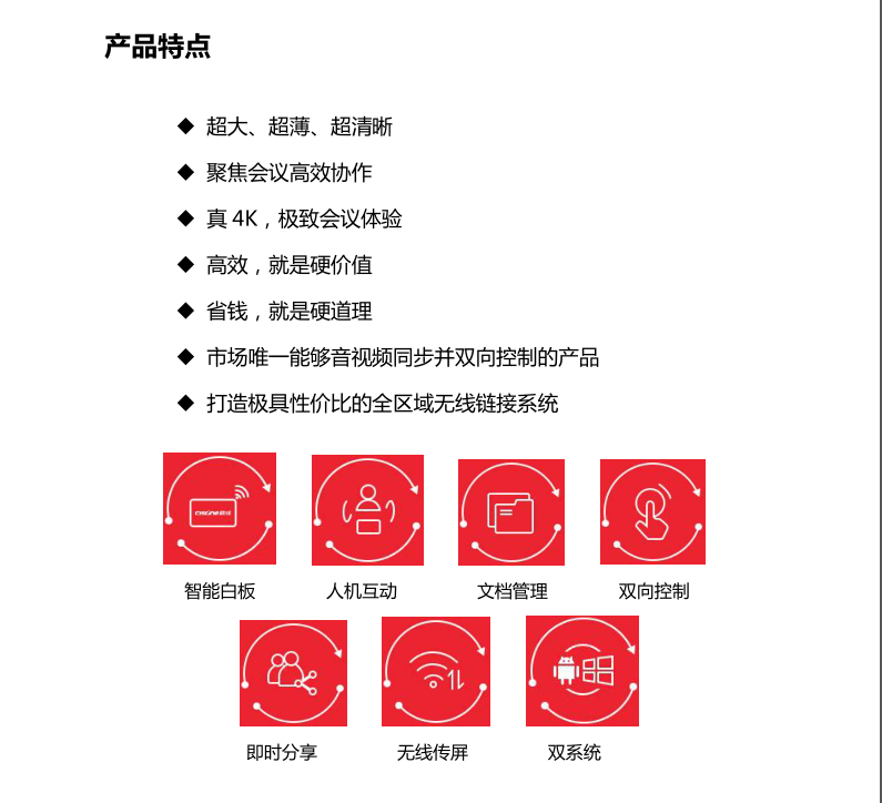 触摸功能红外触摸,支持十点红外触摸;操作方式:手指、触摸笔或其他非透明物体