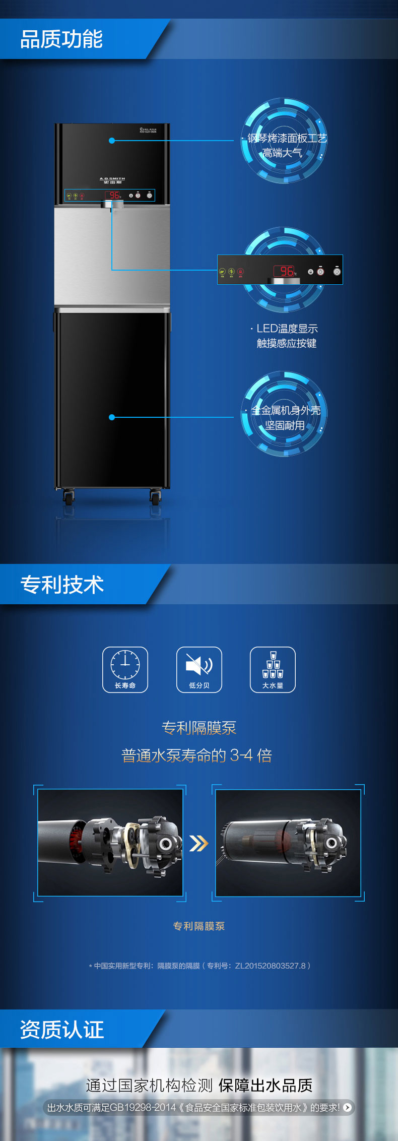 其它净水箱容量:37L.净水流量104L/小时.热水箱容量:10L.热水量30L/小时(≥90℃).使用人数:80-160人。采用RO反渗透技术,五级过滤,出水水质符合<