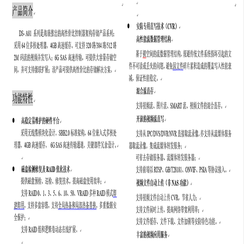 RAID支持RAID0、1、3、5、6、10、50、VRAID、JBOD、Hot-Spare