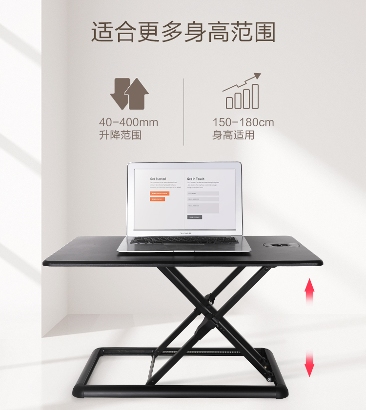 适用范围高度调节范围:40-400mm 桌板尺寸:650*470mm 档位调节:6个档位