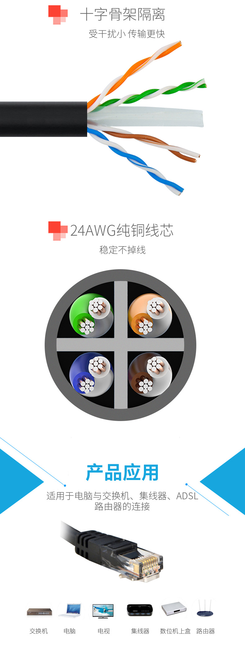 LCLN6RRECBU-5M 六类非屏蔽纯铜网线/蓝色/5M