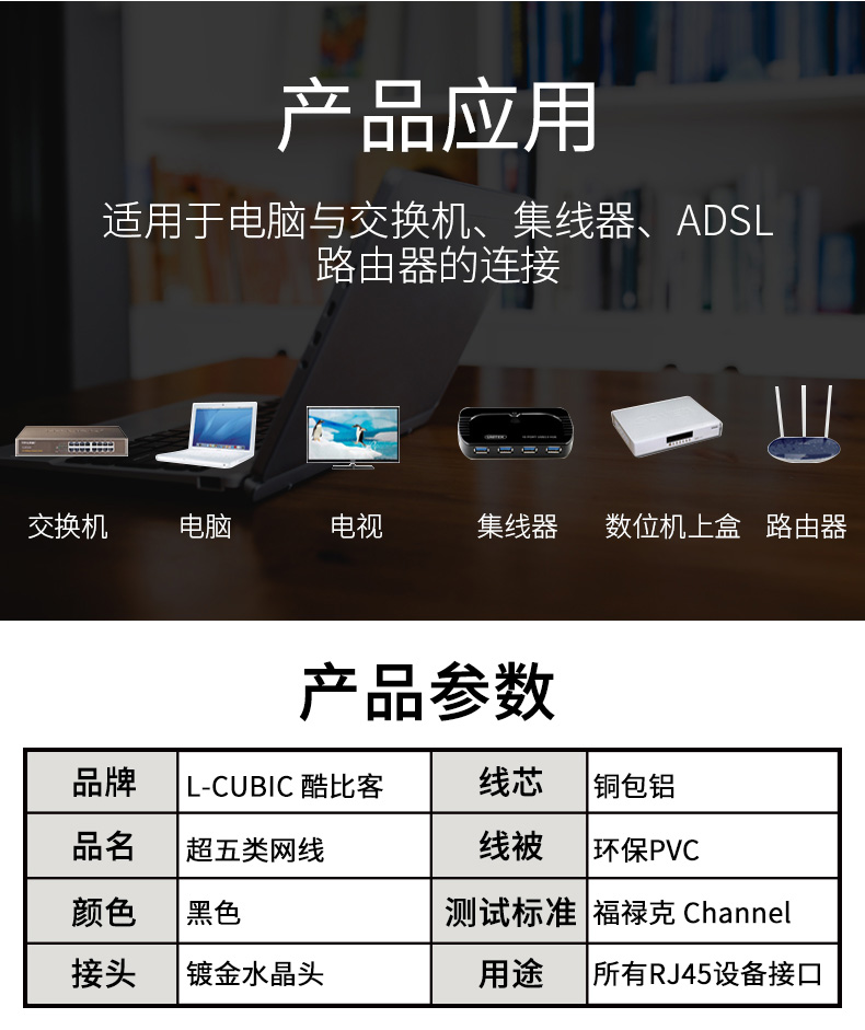 LCLN5ECSGY-5M 超五类非屏蔽铜包铝网线/黑色/5M