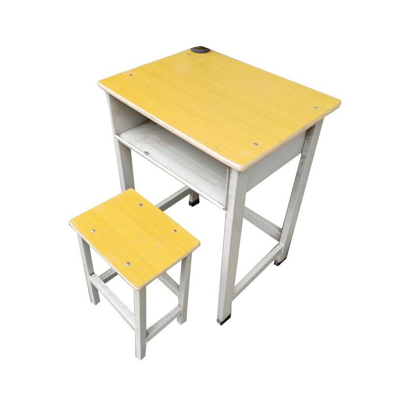 其它规格 600㎜×400㎜×760㎜钢木结构 2)桌面厚16㎜多层板热压成型防火板双贴面,水晶油漆边缘,四角做圆边处理。 3)桌腿架采用优质钢管30×40厚度1.2㎜下方拉撑同桌腿材质。 4)桌斗 冷轧钢板冲压成型,厚度0.8㎜ 。 5)颜色 钢制部分灰白色,木质部分黄榉色 。 6)组装 钢制部分与木质部分连接采用止退螺丝。 7)脚垫 封头及脚垫采用PPT工程塑料注塑成型 。 8)工艺 钢制部分经酸洗磷化后静电喷塑,焊接点平滑无流挂无焊渣无毛刺,木质部分表面平滑无气泡,结构合理稳定性好,性能及要求达到国家标准。 单人钢木方凳 1)规格 330mm×240mm×440mm钢木结构 2)凳面厚16㎜多层板热压成型防火板双贴面,铁皮包边。 3)凳腿 25×25×1.2㎜,凳面多层板热压油漆边,铁皮边高度16㎜与凳面平行。 4)颜色 钢制部分灰白色,木质部分黄榉色 。 5)组装 钢制部分与木质部分连接采用止退螺丝。 6)脚垫 封头及脚垫采用PPT工程塑料注塑成型 。
