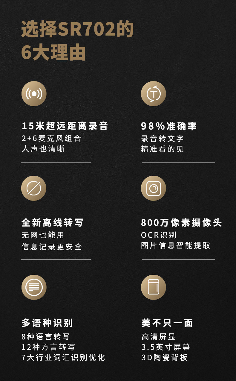 科大讯飞AI智能录音笔SR702终身免费转写 中英文边录边译 离线转写保存 OCR提取图片文本 32G+云储存星空灰