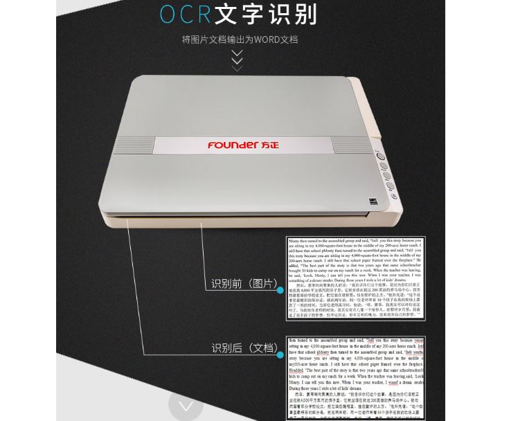 其它性能工作一键搞定:扫描,电子邮件,OCR,创建PDF文档4个快捷功能键, 自动阀值,自动旋转,自动裁切和纠偏,多图像输出,移除装订孔。